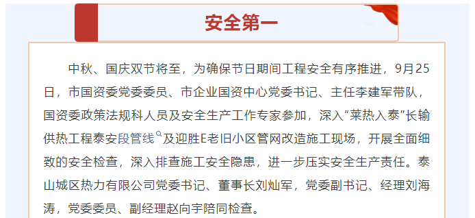 市國資委中秋國慶前夕開展工程現(xiàn)場安全檢查,嚴守安全防線