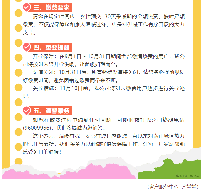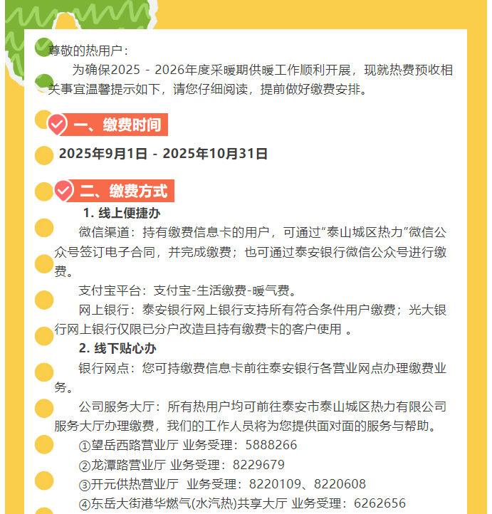 泰安市泰山城區(qū)熱力有限公司2025-2026年度熱費(fèi)預(yù)收提示